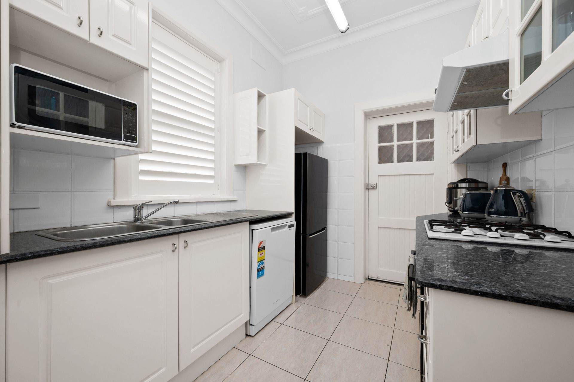 + Modern galley gas kitchen, polished timber floors